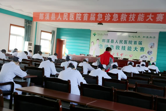 为加强医护团队的急救技能及应急处突能力,提升医疗服务水平,保障医疗质量和安全,经过三个月训练备战,12月27日,郎溪县人民医院在门诊六楼举办了急诊急救技能大赛。参赛队员及前来观摩学习的医护人员共计200余人参加。副院长王爵敏主持开幕式。宣城市急救中心领导,县卫生局局长李锁志,副局长施翔,县医院负责人出席开幕式并致祝词。