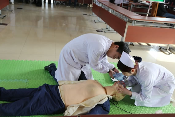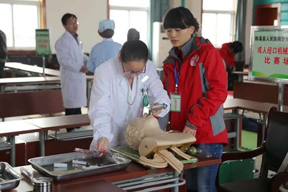 上午开幕式结束后,进行了理论测试。在下午技能竞赛现场,气氛紧张而热烈,选手们沉着冷静、配合一致,以规范的操作、熟练的动作,展示了医护人员急救能力和水平,赢得了专家好评。
