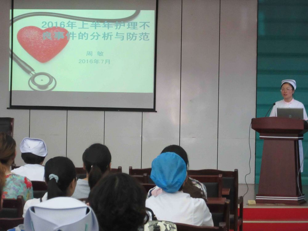 会议由护理部主任周敏主持,周主任将今年上半年临床上发生的给药差错、跌倒、坠床、管道滑脱等护理不良事件进行了总结、点评,随后针对较为典型的护理不良事件进行了客观分析,从多方面层层剖析原因及潜在的护理安全隐患,从中吸取经验、总结教训,避免在今后的护理工作中出现类似问题。同时要求全院护理人员严格执行各项护理核心制度,遵守操作流程,时刻提高安全意识,确保患者安全。
